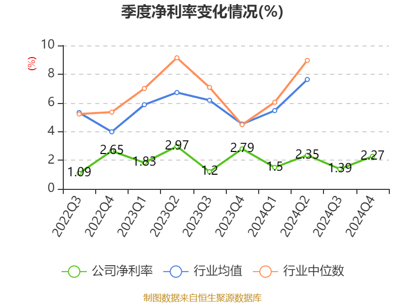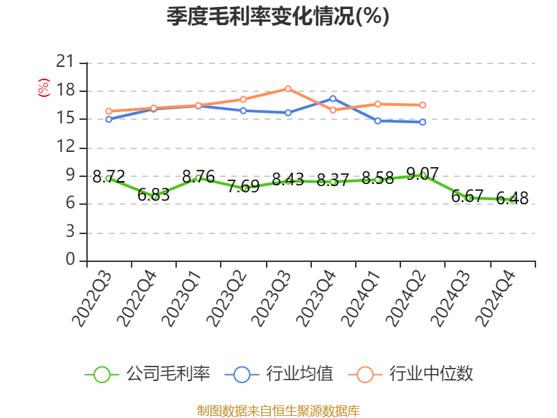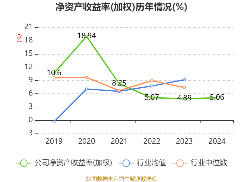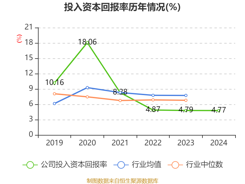 数据显示,2024年公司加权平均净资产收益率为5.06%,较上年同期上升0.17个百分点。公司2024年投入资本回报率为4.77%,较上年同期下降0.02个百分点。