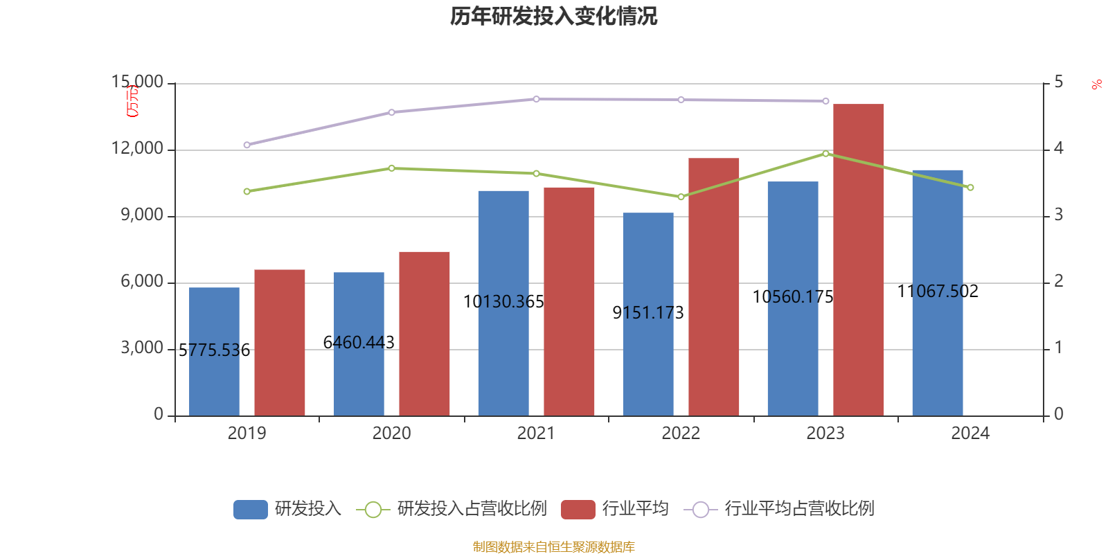 2024年全年,公司研发投入金额为1.11亿元,同比增长4.8%;研发投入占营业收入比例为3.43%,相比上年同期下降0.51个百分点。