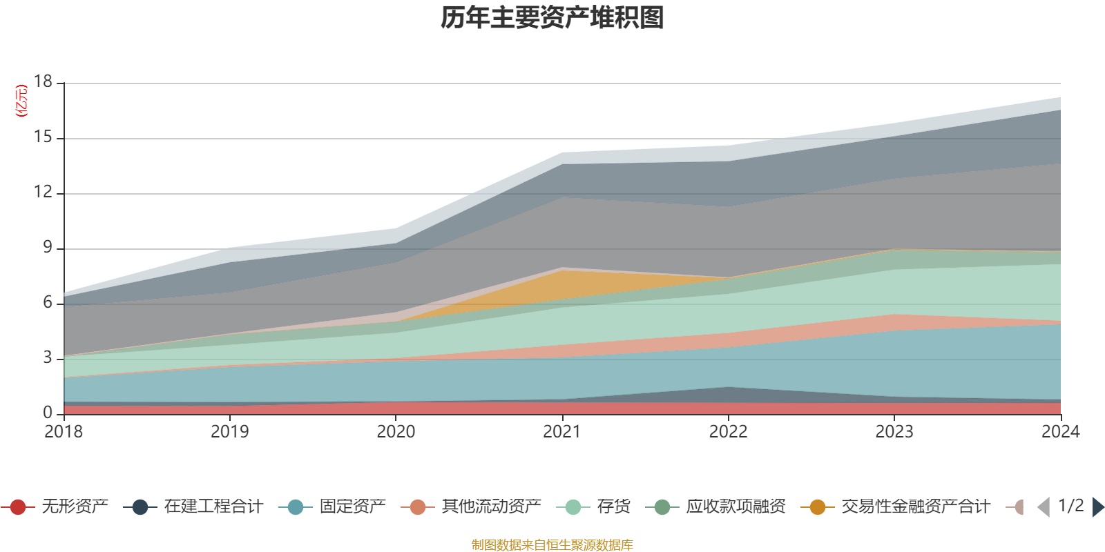 资产重大变化方面,截至2024年末,公司其他流动资产较上年末减少78.01%,占公司总资产比重下降4.55个百分点;应收票据及应收账款较上年末增加25.73%,占公司总资产比重上升3.71个百分点;应收款项融资较上年末减少39.89%,占公司总资产比重下降3.02个百分点;存货较上年末增加26.79%,占公司总资产比重上升2.51个百分点。