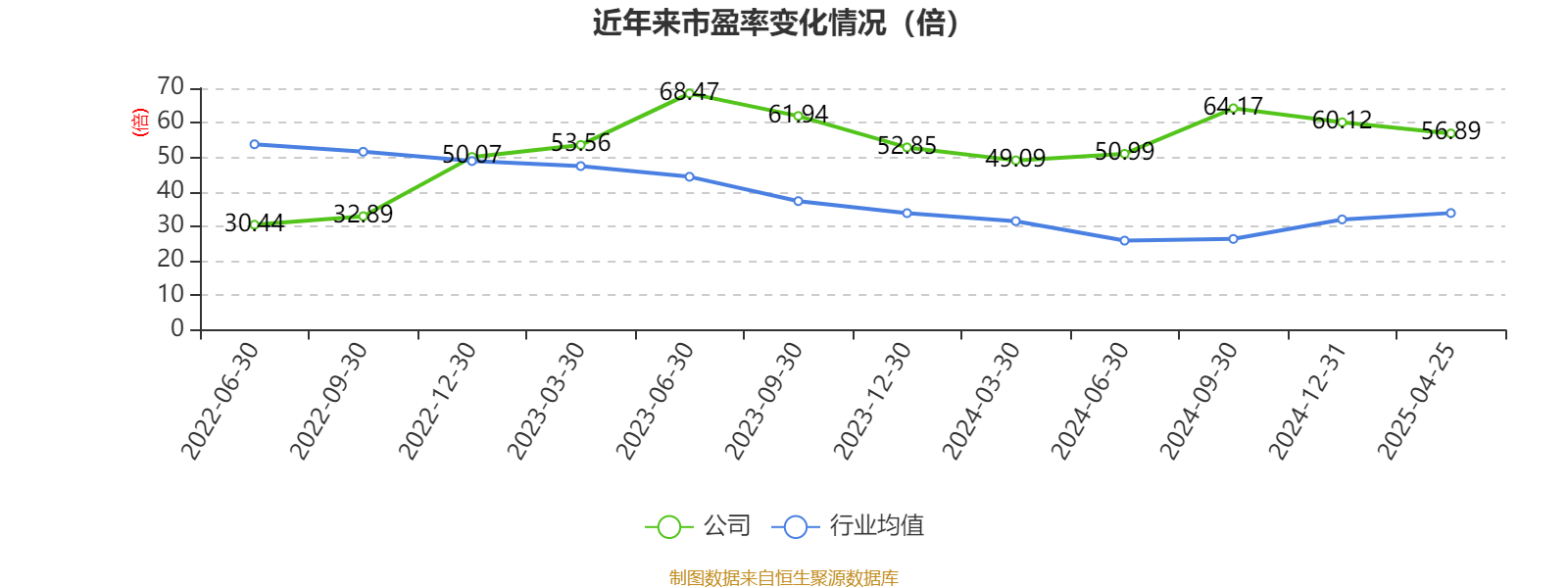 以4月25日收盘价计算,有研粉材目前市盈率(TTM)约为56.89倍,市净率(LF)约2.8倍,市销率(TTM)约1.05倍。