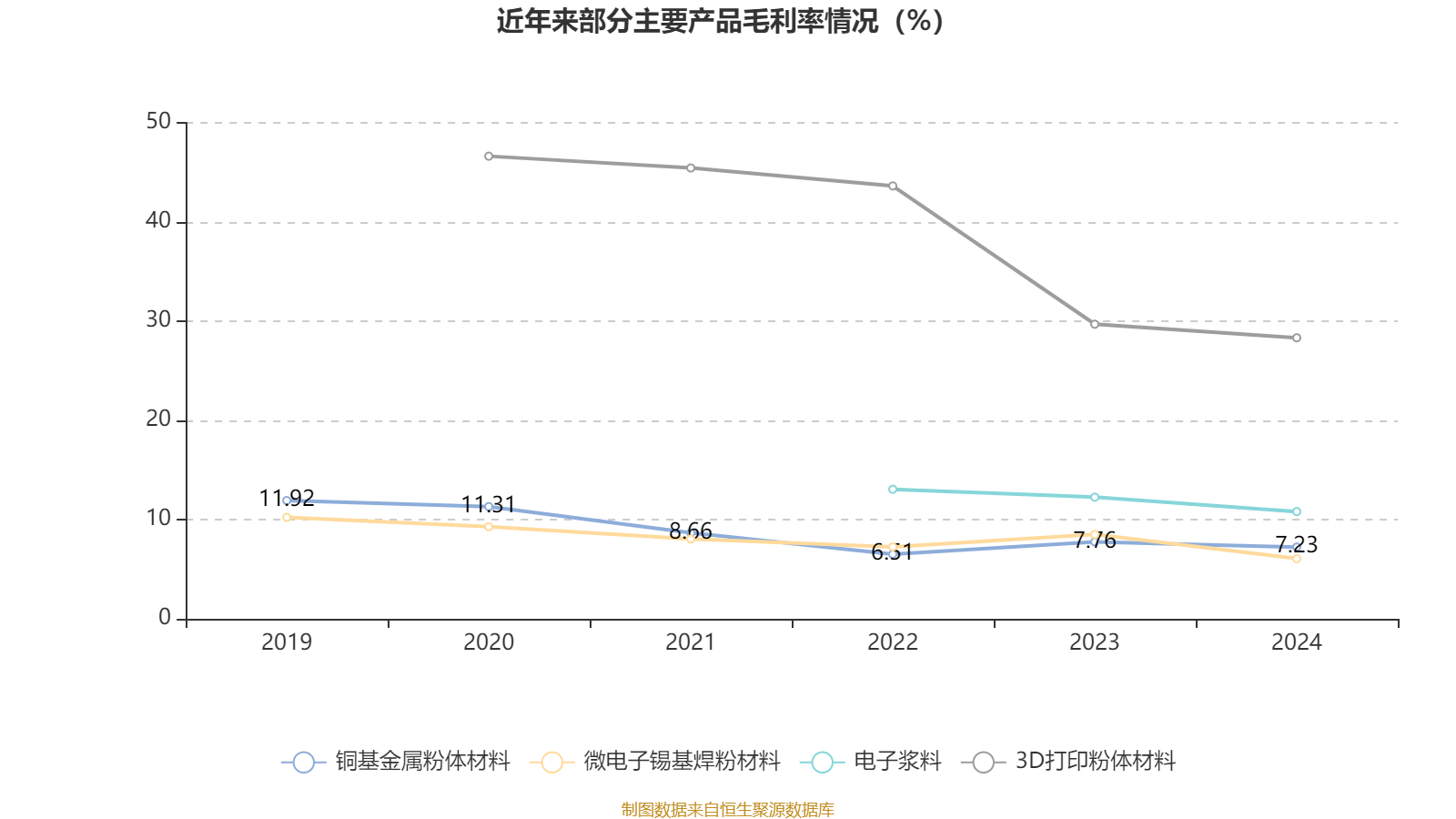资料显示,公司主营铜基金属粉体材料、微电子互连锡基焊粉、3D打印金属粉体材料、电子浆料等。